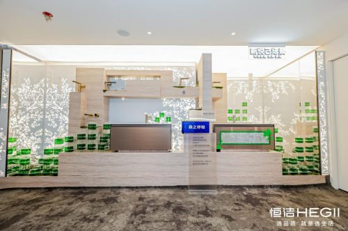 随后来到藏着“森之呼吸”的新悦己场景,透光膜与绿色玻璃体块构建出热带雨林般的光影效果,如林间景致自然疗愈,恒洁浴室柜在模拟的潮湿环境中依旧保持干爽,环保防潮材质加分层收纳,完美平衡了颜值与实用。