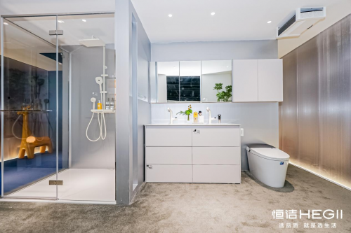 材质则成为阶段特质的隐喻:单身青年空间的清透亚克力象征纯粹自由,本身既有视觉扩容的效果,又呼应刚步入社会青年的明快与憧憬。空间搭配的恒洁N系列无水箱超薄壁挂马桶,完美解决了小户型卫浴的空间重组难题。“无需拆墙安装的设计,是老房改造和小户型扩容的神器”设计师丹丹表示道。